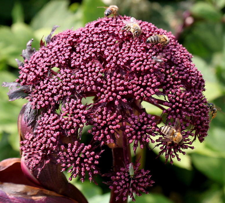 Рассада Дудника гигантского становится украшением любого сада во время цветения, то есть, начиная со второй половины июля. Это растение имеет эффектный внешний вид и никогда не остается незамеченным. У него плотный и короткий корень, одиночный стебель, на котором располагаются большие листья и соцветия темно-бордового цвета. При правильном уходе соцветия вырастают до 20 – 30 см в диаметре. Данный сорт рекомендуется высаживать во влажной почве на солнце или в тени. Дудник гигантский относится к типу монокарпических растений, которые зацветают и плодоносят всего 1 раз. Пересаживать можно только очень молодые побеги, так как после пересадки растение часто гибнет.