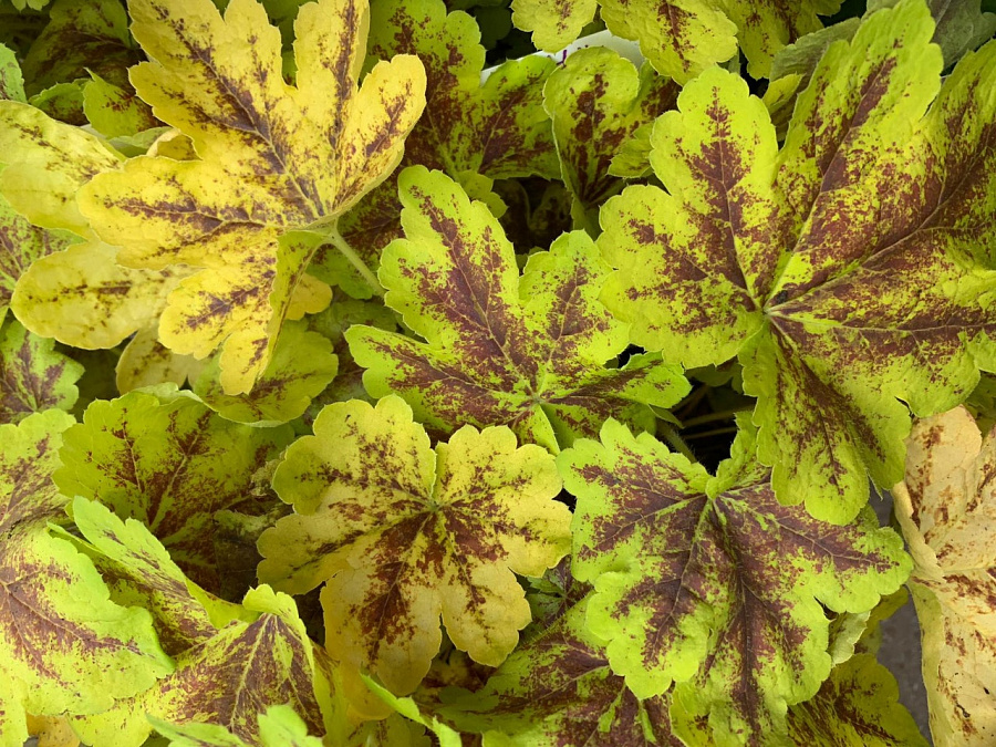 Рассада гейхереллы Солар Пауер (Solar Power) порадует изящным видом яркой желто-зеленой листвы с красными прожилками в центре. Этот сорт нашел широкое применение в ландшафтном дизайне. Его используют для украшения бордюров, рабаток, оформления альпийских горок и составления смешанных клумб. Летом среди листвы появляются высокие цветоносы с белыми соцветиями.