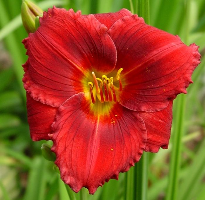 Окраска цветка : красный с размытыми бордовыми очертаниями на лепестках, центр салатово-желтый