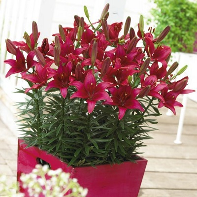 Луковицы Лилии азиатской горшечной Тайни Гоуст (Lilium asiatic Tiny Ghost) ― великолепный посадочный материал. Тайни Гоуст привлекательна своими карминно-красными цветками с глянцевым блеском лепестков.