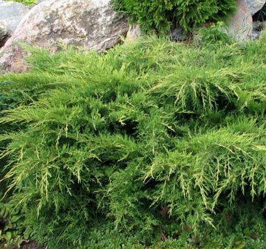 Саженцы можжевельника хвойного Пфитцериана (Pfitzeriana) отлично украсят любой сад или зеленую зону. Этот живописный кустарник имеет небольшую высоту, и почти лежит на земле, рапластав свои ветки-лапы на расстояние до трех метров. Это надо учитывать при посадках, оставляя больше места для роста можжевельника. Пышная крона имеет удивительную расцветку: светло-зеленую почти желтую, в тени она становится ярко зеленой. Растение крупномер Пфитцериан на ветру плохо развивается и даже может погибнуть. Для хорошего развития требуются: