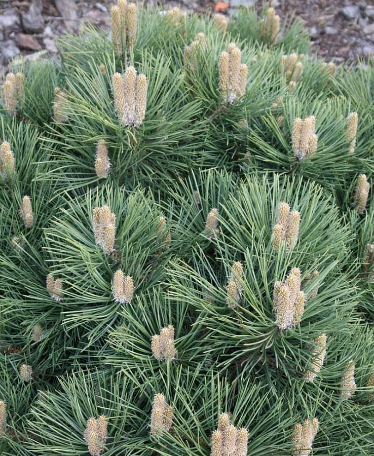 Саженцы Сосны чёрной Хонибрукиана (Hornibrookiana) украшают своей светло-зеленой хвоей открытые солнечные места вашего участка, например японские сады, альпийские горки, склоны. Взрослые экземпляры карликового сорта достигают в высоту не более двух метров, крона – шаровидной формы.